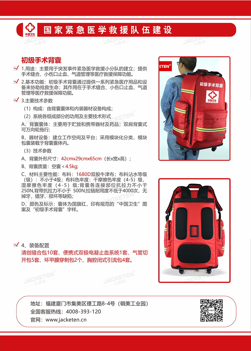 主營產(chǎn)品: 急救背囊,應(yīng)急救援包,急救箱包廠家